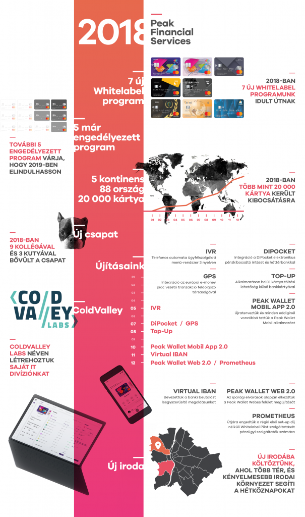 A Mastercard prepaid programjairól híres Peaknél minden ok megvan az örömre, hiszen idén hét, teljesen új Whitelabel programot indítottak útnak és öt, már engedélyeztett kártyaprogram pedig 2019-ben debütál. A fintech cég nemzetközi terjeszkedése páratlan: jelenleg 5 kontinens 88 országában rendelkezik ügyfelekkel és 2018-ban több mint 20.000 kártyát bocsátott ki.