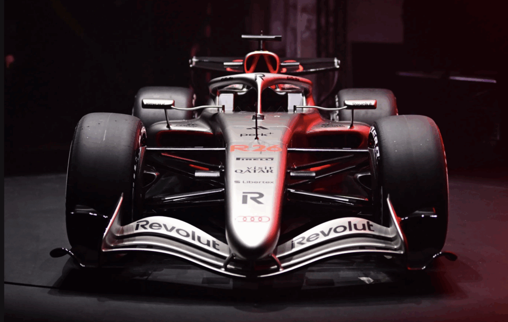 Az Audi R26 festése első ránézésre látványos, de közelebbről inkább visszafogott, mint extravagáns. A titánhatású felületek, a látható karbon elemek és a visszatérő vörös hangsúlyok nem öncélú megoldások, hanem az Audi új formanyelvének Formula–1-es adaptációi. A dizájn itt nem csupán arculati kérdés, hanem következetes vizuális rendszer, amely az autótól a csapatruházaton át a paddock-megjelenésig egységesen jelenik meg.